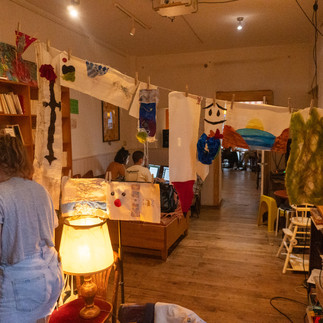 This afternoon we set up our Lifelines exhibition at Café Plume in Neukölln. In the cozy little space, we hung up the fabric lifelines we’ve collected over the past months during our workshops, transforming the room into a warm, welcoming environment for our final gathering.